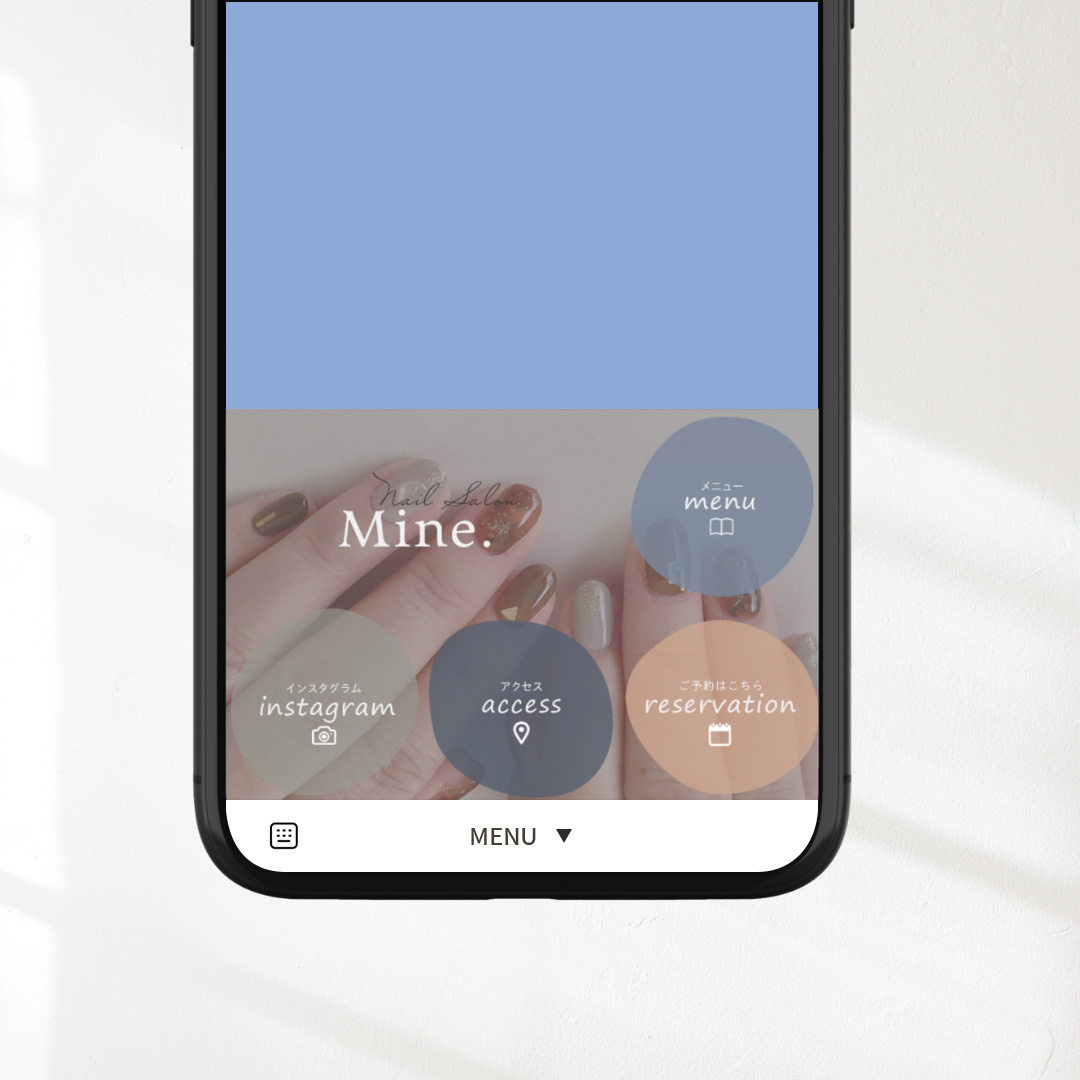 ネイルサロンのLINEリッチメニューをデザインしました。 20~30代のシンプル・カジュアルなテイストを好む女性をターゲットにしたサロンを想定し、メニューの配置は最終的にご予約に繋がるような導線を意識しました。